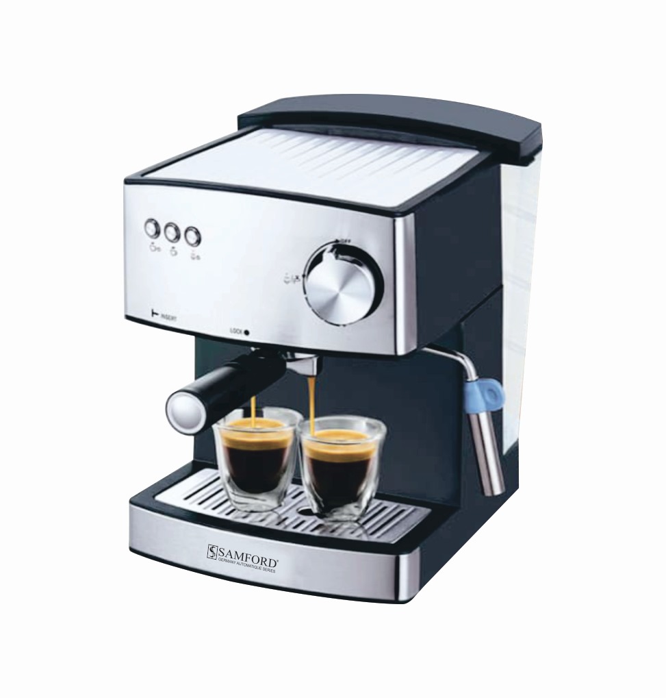Espresso Machine SG 2035 is available in low price at SAMFORD.PK The SAMFORD Espresso Machine features a stainless steel boiler, a powerful 15-bar pump, and a pressurized crema portafilter for perfect espresso.